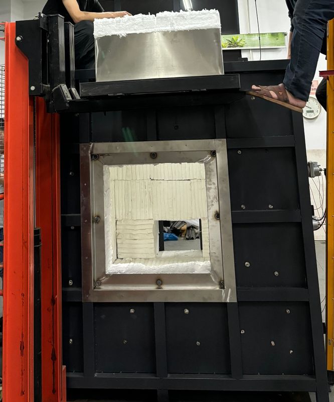2.Ofenstruktur:verwendet eine vierlagige Struktur, wobei die Innenschicht 1300 °C und die Außenschicht Raumtemperatur aufweist. Von außen nach innen sind dies: Die erste Schicht ist eine Edelstahlschale, und die zweite Schicht ist ein Stahlstrukturrahmen; Die dritte Schicht ist mit Hochtemperaturziegeln gebaut, um den Umfang zu bilden; Die vierte Schicht ist Hochtemperatur-Keramikwolle, die Temperaturen bis zu 1700 °C standhält.