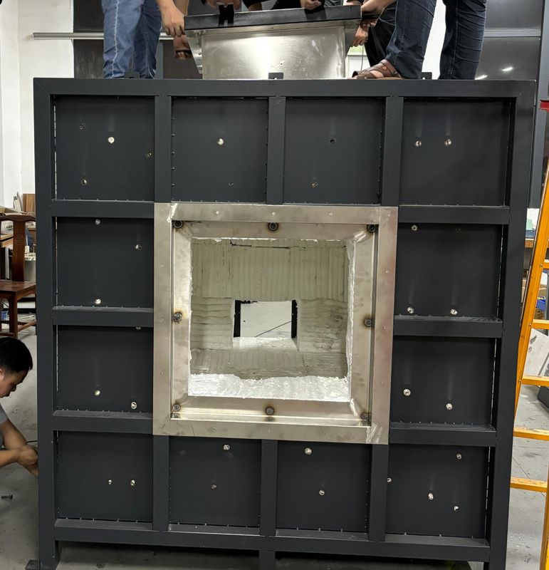 2.Aufbau des Ofen:hat eine Vierschichtstruktur, wobei die innere Schicht bei 1300 °C und die äußere Schicht bei Zimmertemperatur besteht.und die zweite Schicht ist ein StahlrahmenDie dritte Schicht besteht aus hochtemperaturen Ziegelsteinen, die die Peripherie bilden; die vierte Schicht besteht aus hochtemperaturer Keramikbaumwolle, die Temperaturen von bis zu 1700 °C aushält.